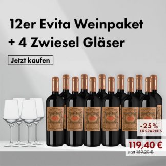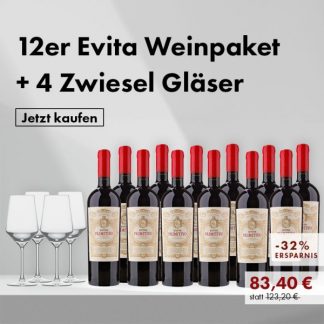 EVITA Primitivo IGT Puglia 2022 12 Flaschen + 4 Weingläser
