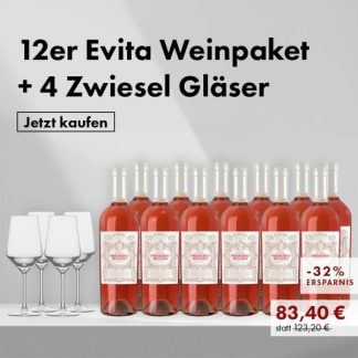 EVITA Primitivo Rosato IGT Puglia 2022 12 Flaschen + 4 Weingläser