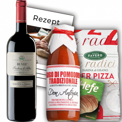 Vinolisa Selezione Vinolisa Pizzabox Grundzutaten mit dem Barbeira d’Alba Ruvei